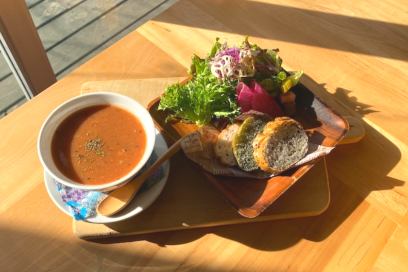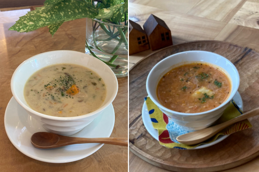 季節の野菜豆乳スープや、身体に優しいスープ、種類はスタッフまで♪